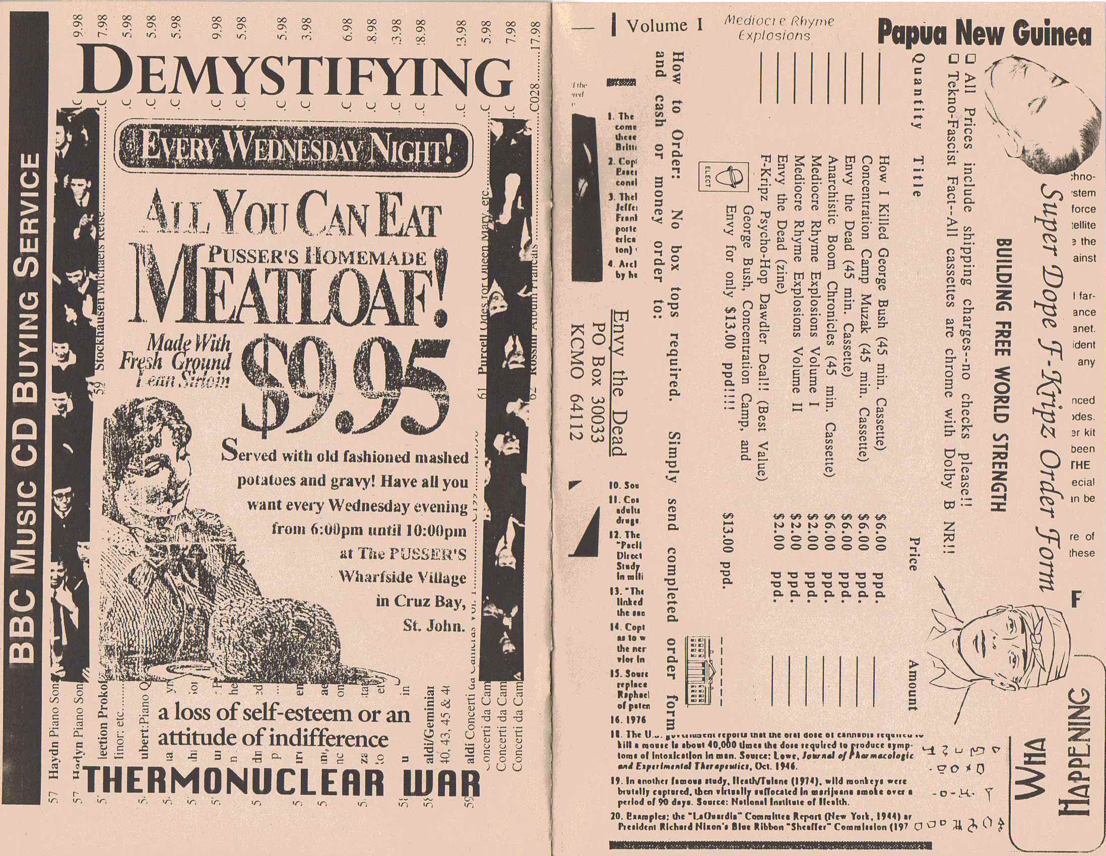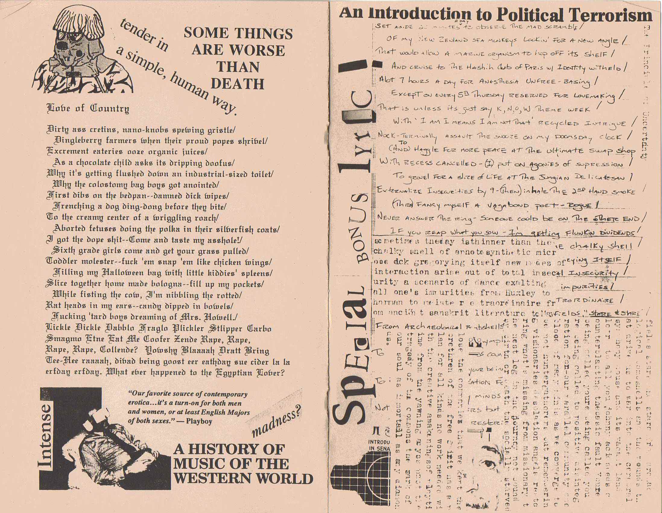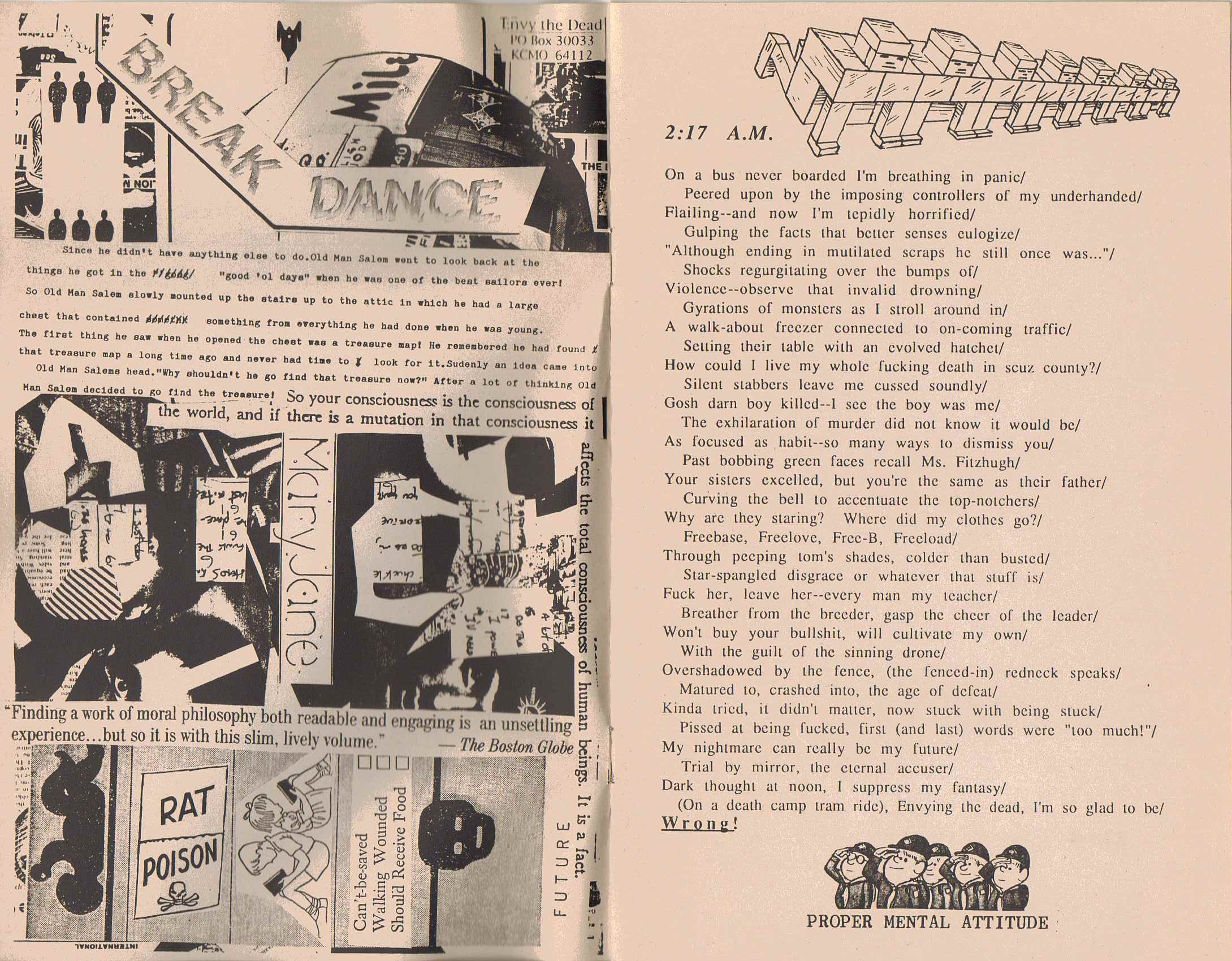 Mediocre Rhyme Explosions was the booklet that accompanied the Envy the Dead album in 1993. It showcases some of Dave Mac’s lyrical ingenuity and features a special handwritten bonus lyric, for the song “The Principle of Uncertainty,” which unfortunately we never properly recorded .